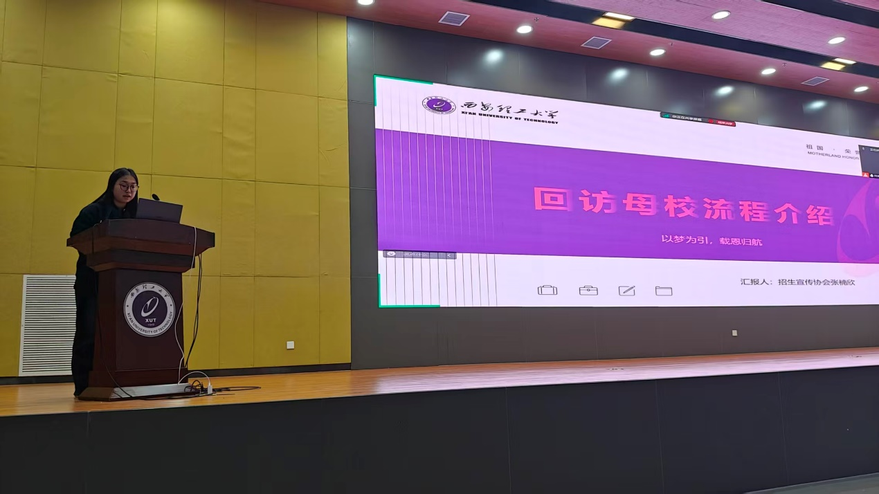 为深入推进高中-高校协同育人工作,凝聚优秀学子青春力量,引导学子以感恩之心回馈母校、以榜样之力传递西理工育人温度,赋能回访母校专项社会实践活动高效开展,12月30日晚,西安理工大学2026年优秀学子回访母校专项社会实践活动出征仪式暨动员培训会在曲江校区图书馆报告厅举办。活动由本科生院招生管理科科长司腾飞主持。