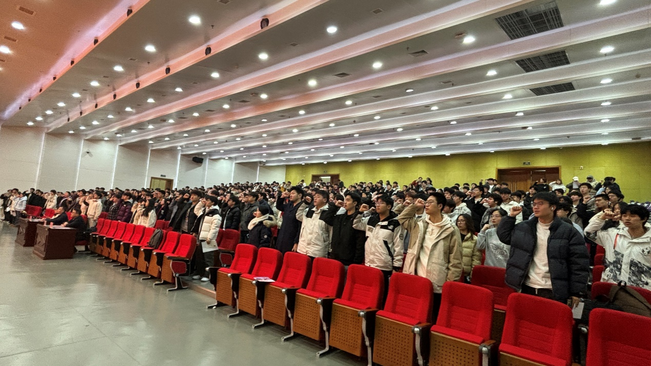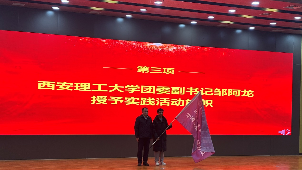 校团委副书记邹阿龙为实践活动队员代表授旗。全体实践队员进行了庄严的宣誓。