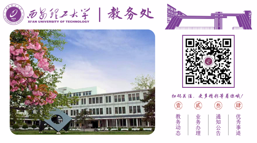 请同学们扫描下方二维码,关注西安理工大学教务处公众号,把 “教务小助手” 装进口袋!