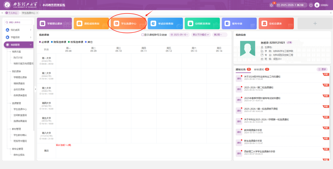 学校定于2025年9月11日启动新生选课,现将安排通知如下: